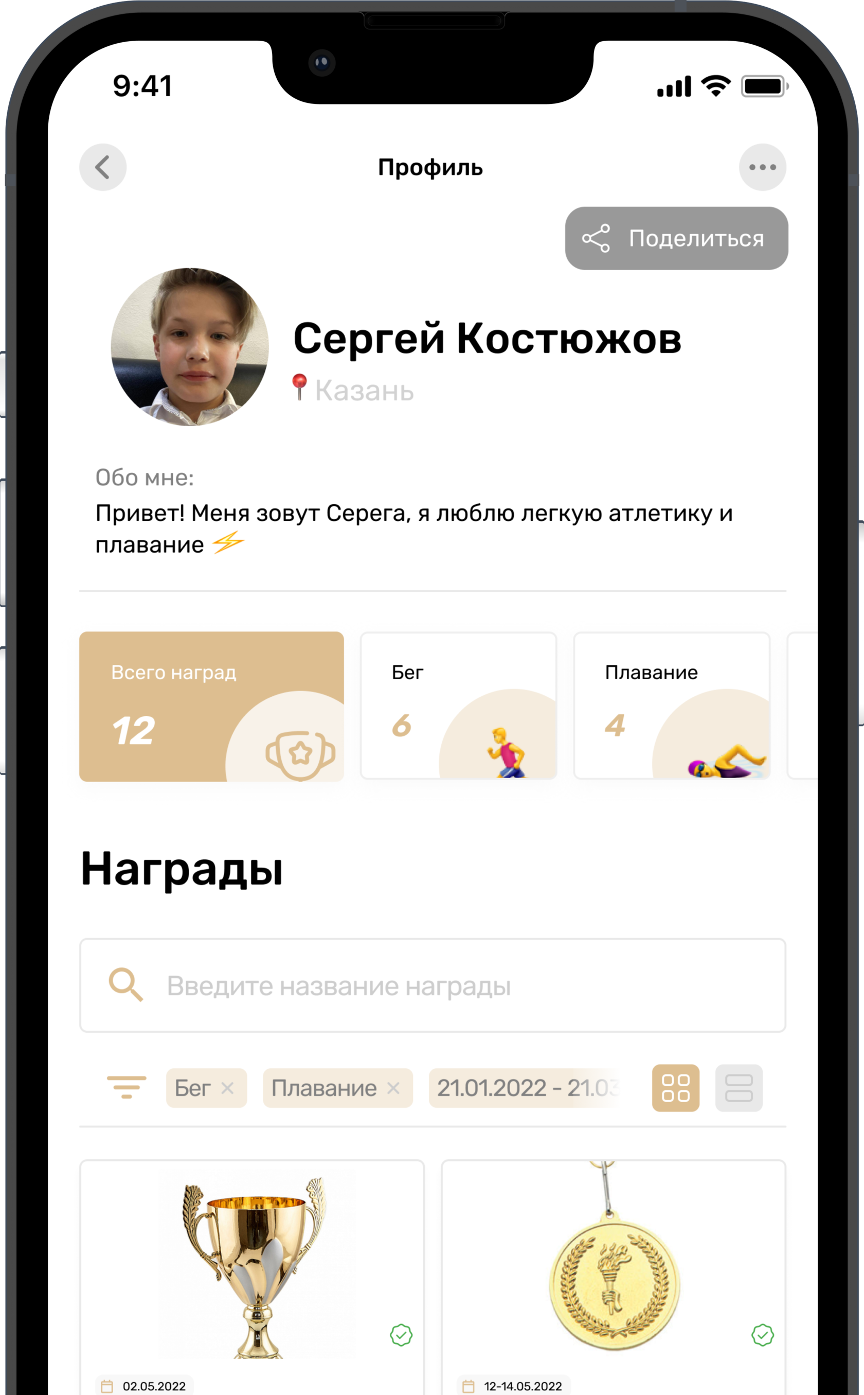 Фото и видео с соревнований привязыыаются к наградам